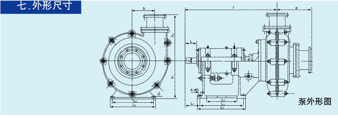 ⑹、在泵的吸入管處已裝配一段可拆的短管,其長度可拆開前泵殼和更換易損件、便于泵的檢修。