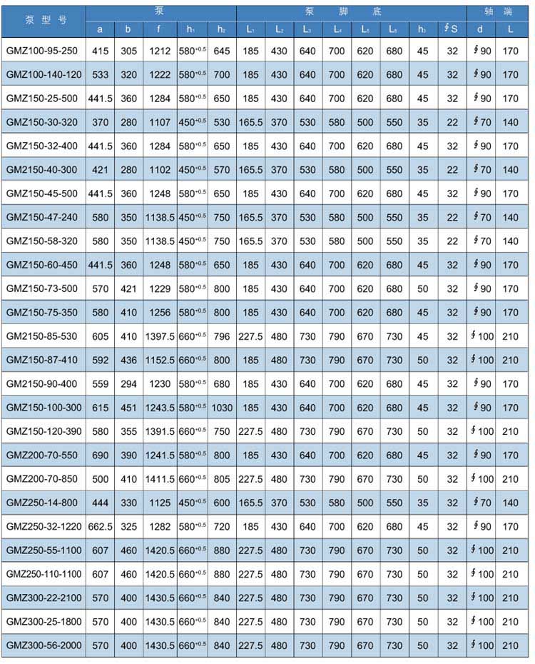 1、GMZ型渣漿泵,過流部件采用高強(qiáng)度耐磨材質(zhì),適用于輸送強(qiáng)磨蝕、高濃度、大顆粒的渣漿,在泵的最大工作壓力范圍之